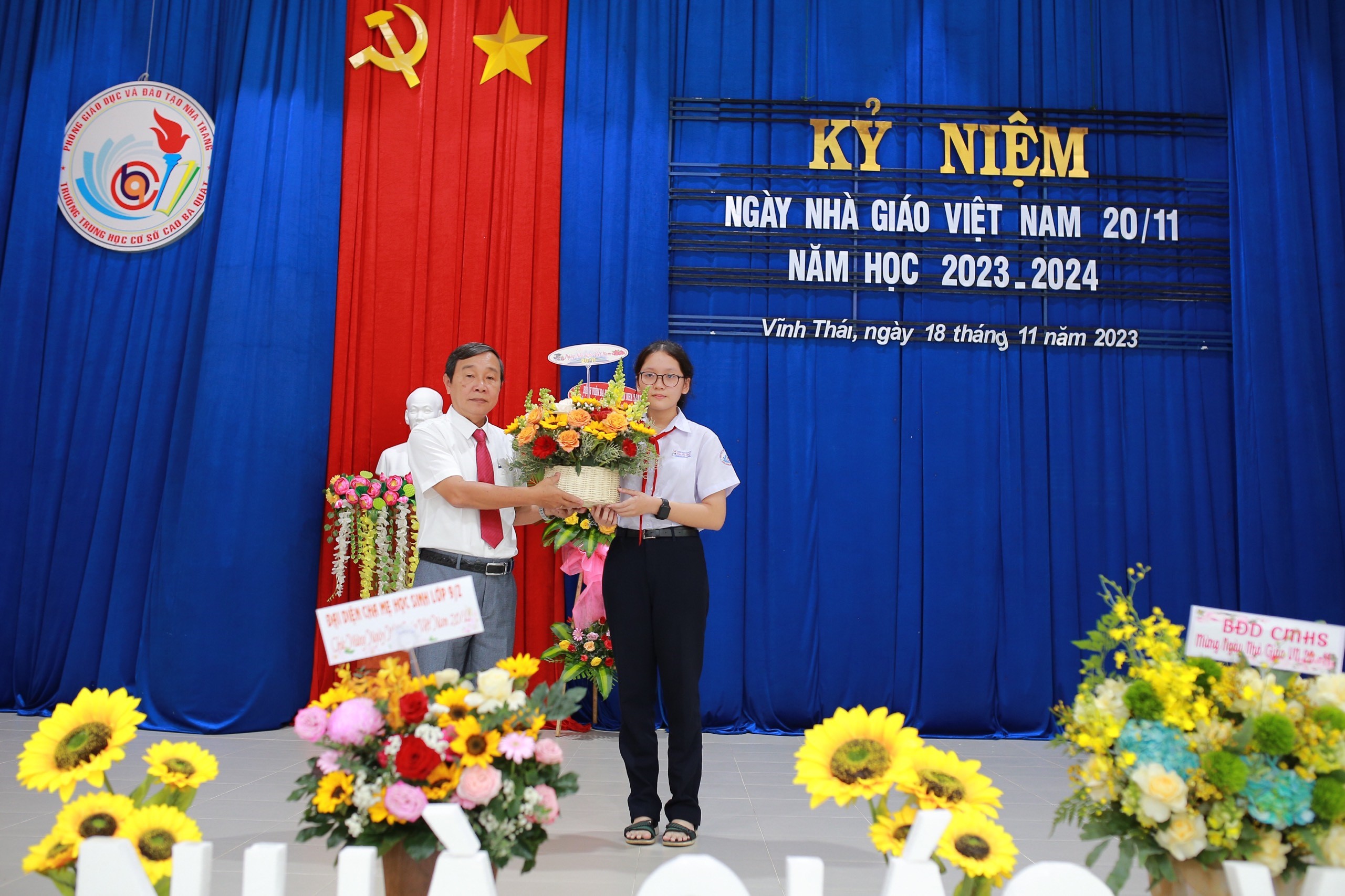 Đảng ủy và UBND xã Vĩnh Thái tặng hoa nhà trường