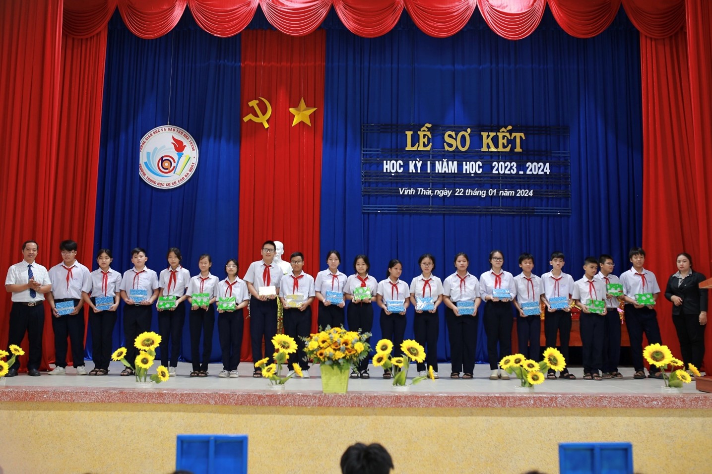 Phát thưởng cho các em đạt ĐTB HKI cao nhất trường, nhất khối