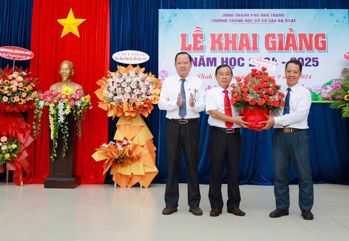 Trong không khí cả nước hân hoan vui mừng chào đón kỷ niệm 79 năm Quốc khánh mùng 02 tháng 9; sáng nay ngày 05 tháng 9 năm 2024, trường THCS Cao Bá Quát long trọng tổ chức Lễ Khai giảng năm học mới, năm học 2024-2025. Nhà trường vinh dự đón tiếp bà Nguyễn Thị Xuân Lan – Phó Bí thư Thường trực Đảng ủy, ông Nguyễn Thanh Hy – Chủ tịch UBND xã Vĩnh Thái; thầy Nguyễn Công Thự - Nguyên Hiệu trưởng, Ban đại diện CMHS, các nhà hảo tâm cùng toàn thể thầy giáo, cô giáo và trên 700 học sinh của nhà trường.