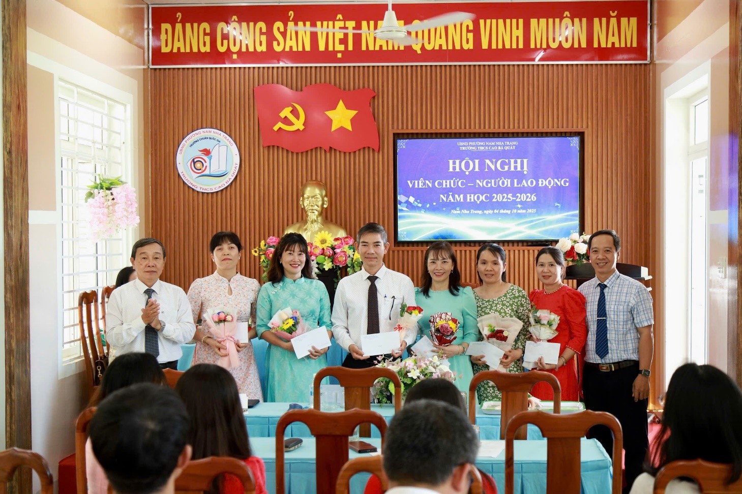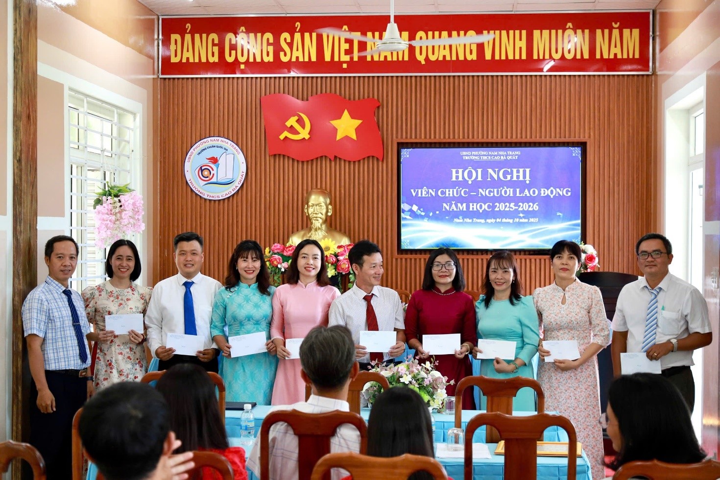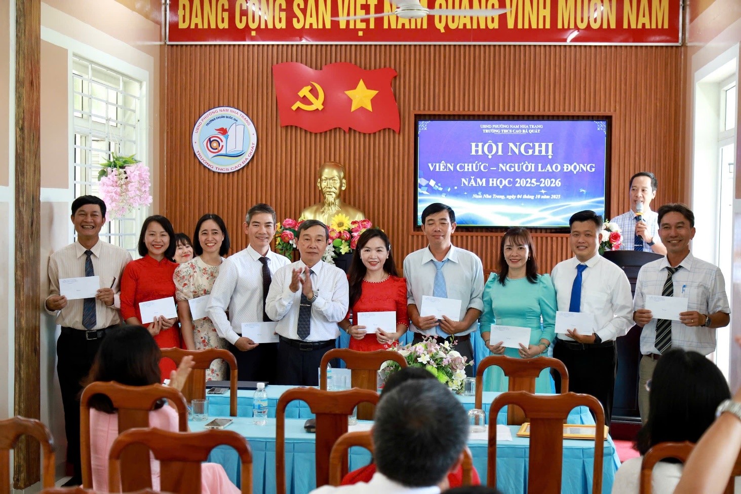 Sáng nay ngày 04 tháng 10 năm 2025; trường THCS Cao Bá Quát tổ chức Hội nghị Viên chức – Người lao động năm học 2025-2026. Tham dự có thầy Nguyễn Thanh Tuấn: Bí thư chi bộ - Hiệu trưởng; thầy Bùi Thanh Tùng: Phó Bí thư chi bộ - Phó hiệu trưởng cùng toàn thể viên chức, người lao động của nhà trường.