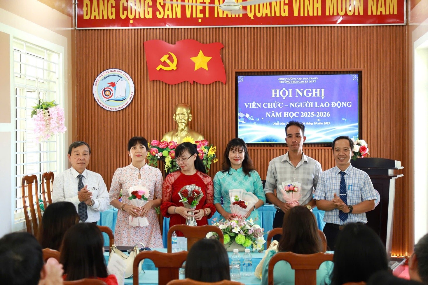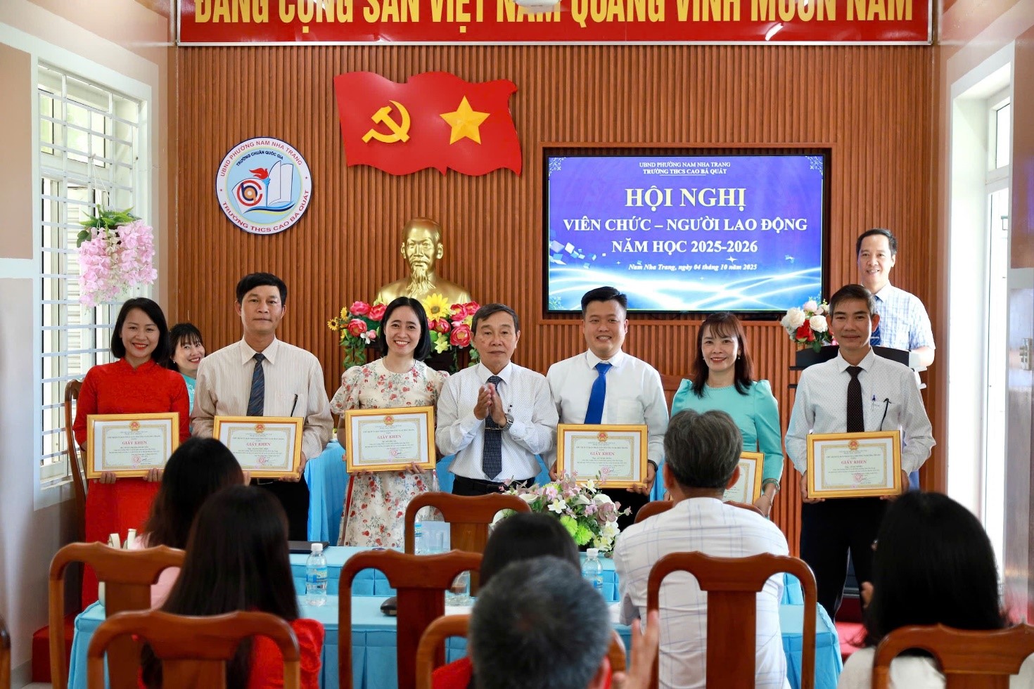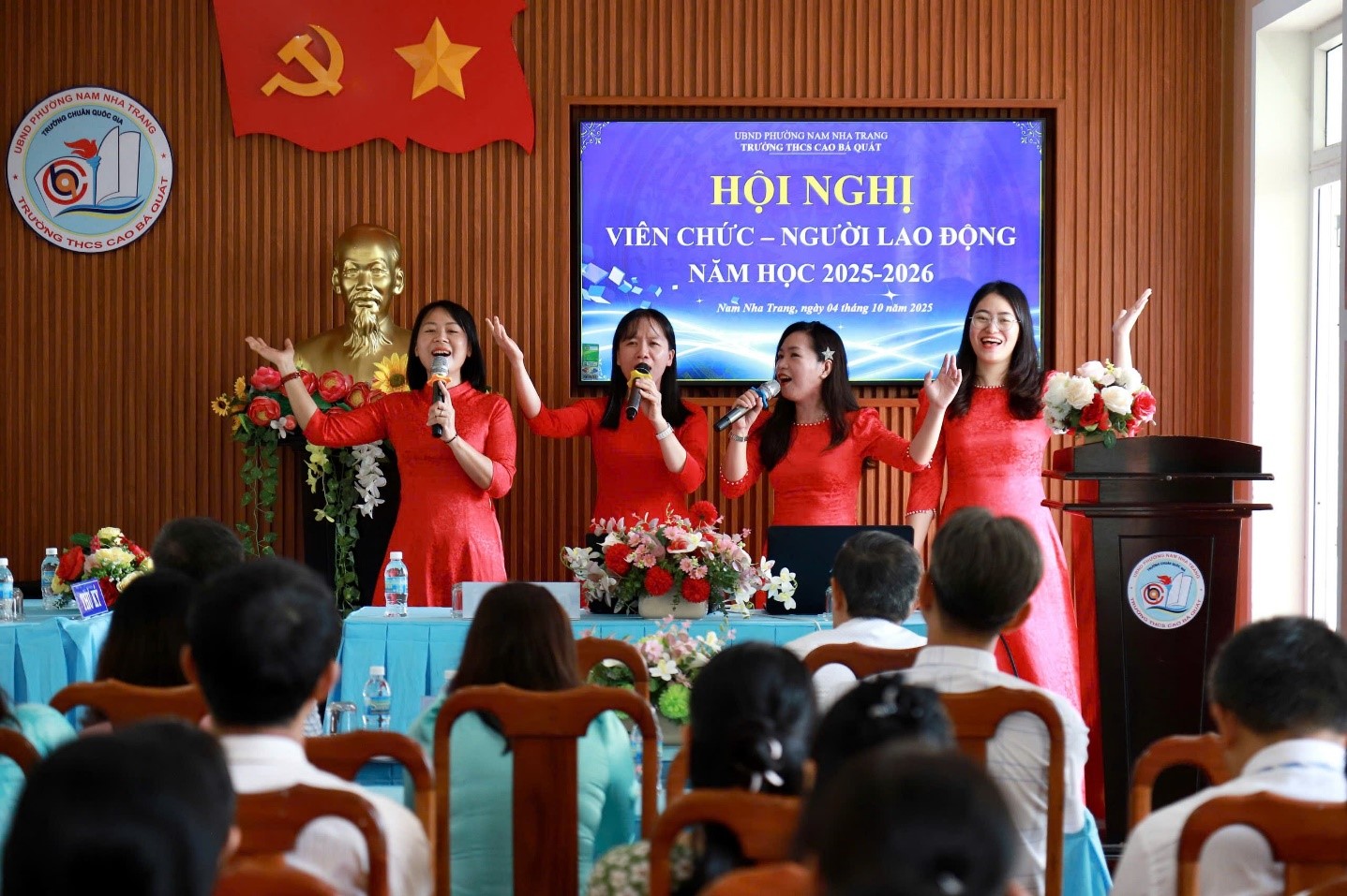 Sáng nay ngày 04 tháng 10 năm 2025; trường THCS Cao Bá Quát tổ chức Hội nghị Viên chức – Người lao động năm học 2025-2026. Tham dự có thầy Nguyễn Thanh Tuấn: Bí thư chi bộ - Hiệu trưởng; thầy Bùi Thanh Tùng: Phó Bí thư chi bộ - Phó hiệu trưởng cùng toàn thể viên chức, người lao động của nhà trường.