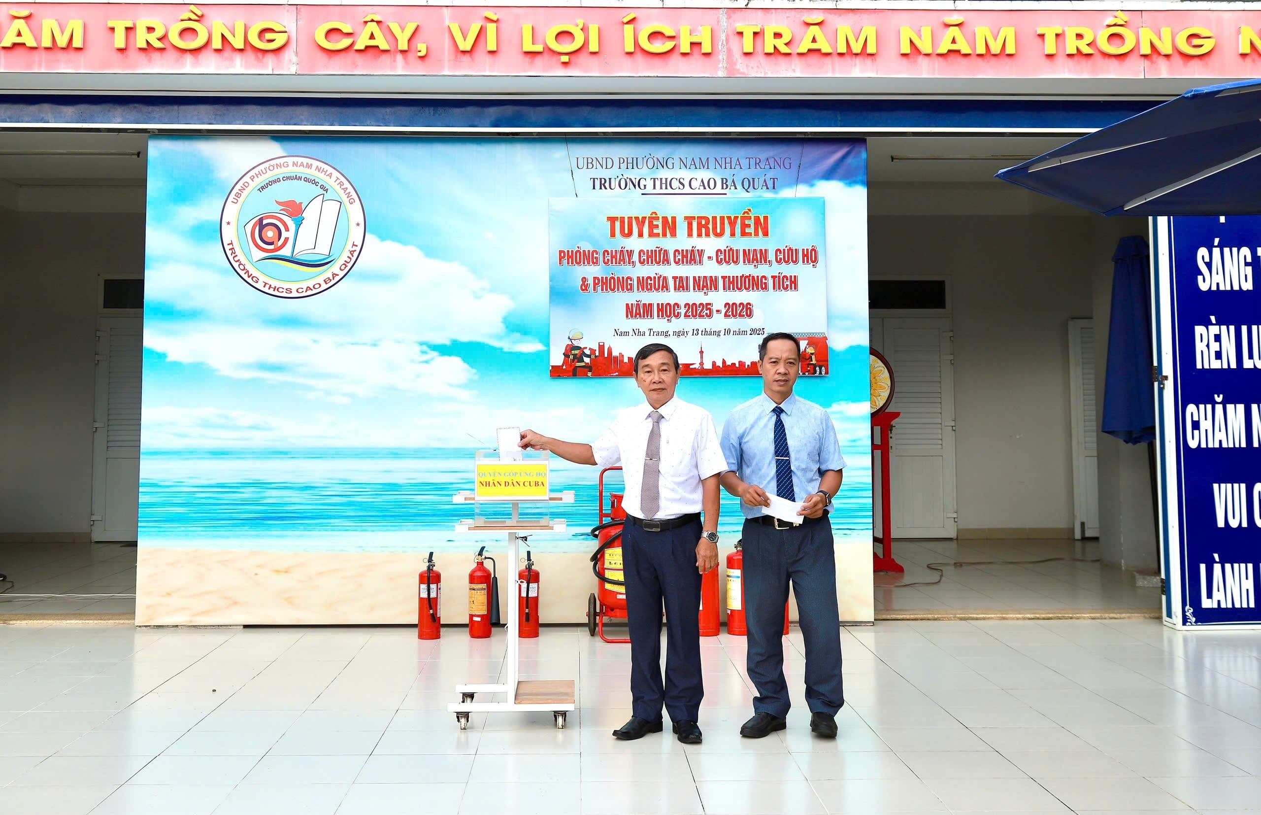 Hưởng ứng lời kêu gọi của Hội Chữ Thập đỏ tỉnh Khánh Hòa; sáng nay, ngày 13 tháng 10 năm 2025, toàn thể cán bộ, giáo viên, nhân viên và gần 780 học sinh trường THCS Cao Bá Quát phường Nam Nha Trang tiến hành quyên góp ủng hộ Nhân dân Cu Ba anh em.